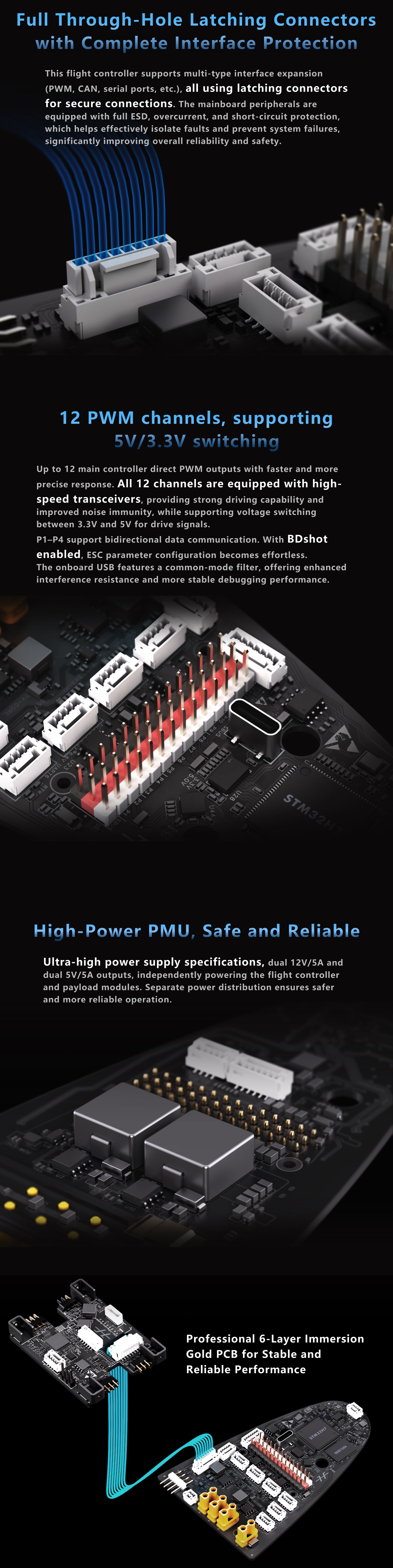 - ESC DShot Support: Supported, test points reserved for up to 4 motors