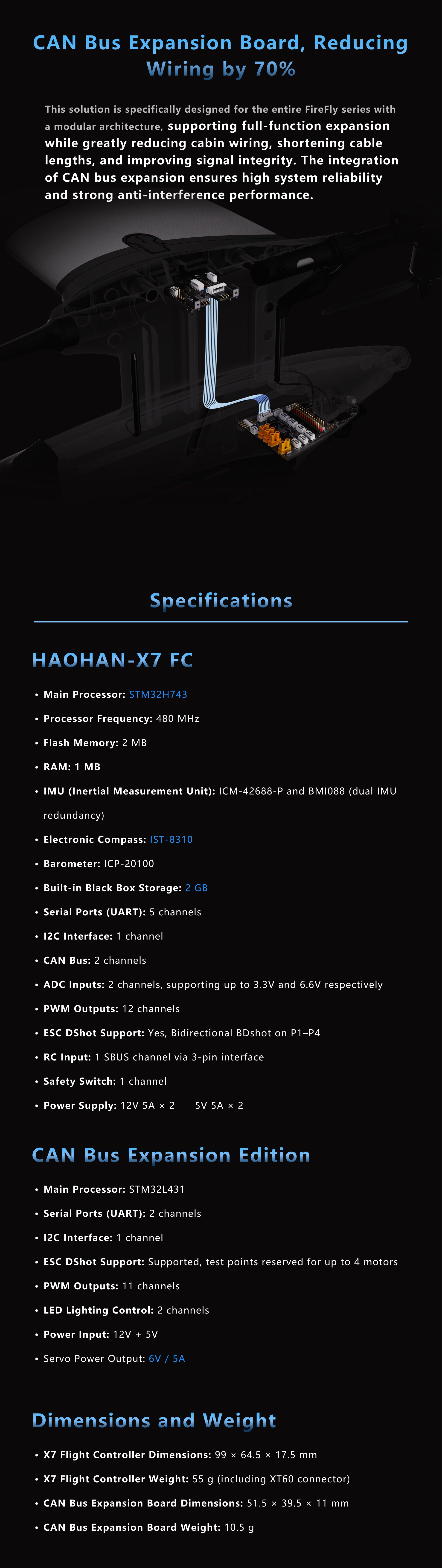 - X7 Flight Controller Weight: 55 g (including XT60 connector)