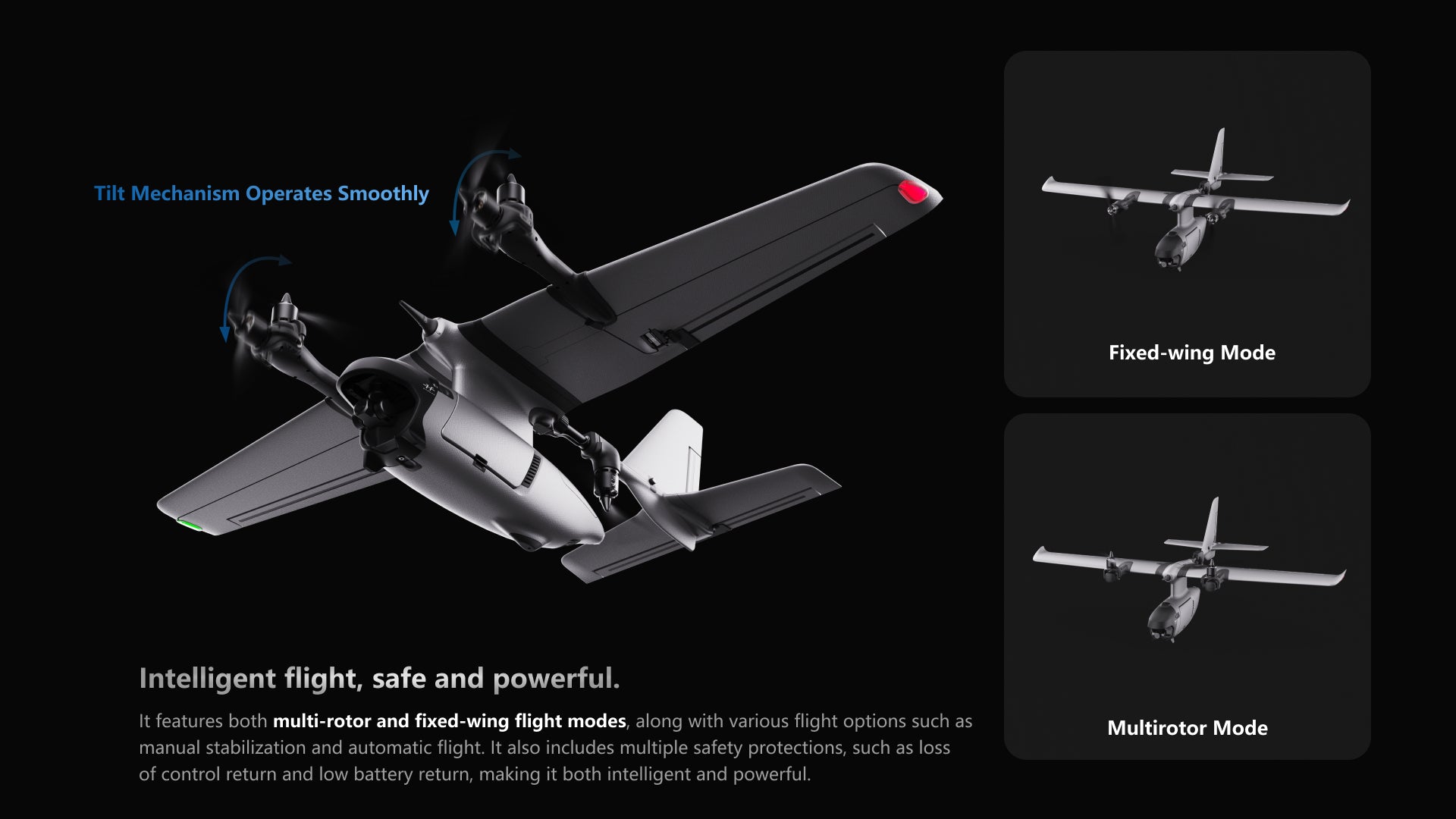 - Fixed-Wing Mode: For extended range and efficiency.